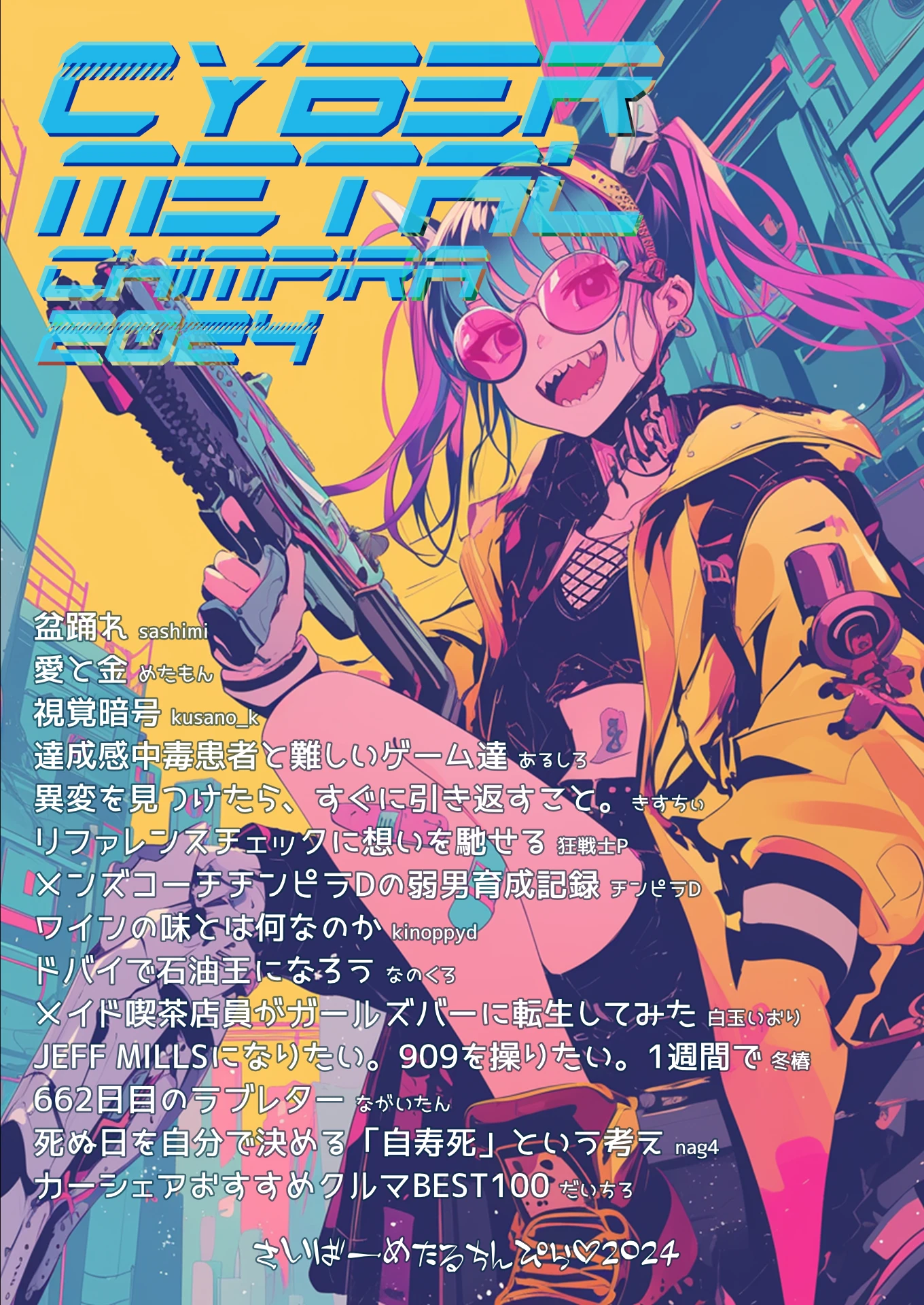 ノンジャンル総合誌「サイバーメタルチンピラ」は、あなたの知的好奇心をサイバネティックスに刺激します。 最もフィジカルで、最もプリミティブで、そして最もフェティッシュな一冊をあなたに。